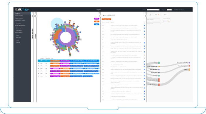 - Each flow maps the topics covered in each conversation…width of each flow is proportionate to the volume for that topic, making it easy to prioritize the most important ones.